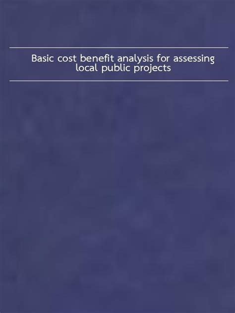 Download Basic Cost Benefit Analysis for Assessing Local Public Projects Paperback Internet Archive